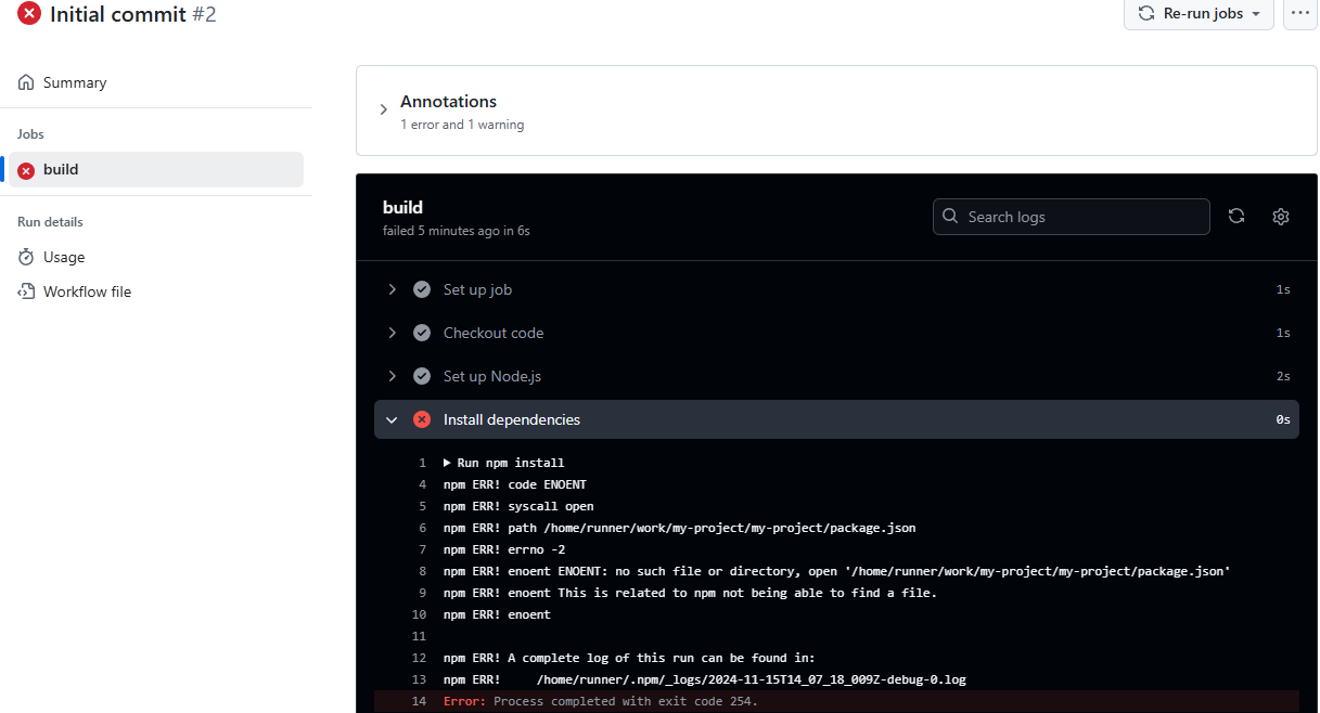 - 예를 들어, npm install 중 오류가 발생한 경우, 해당 오류를 해결한 후 다시 푸시하면 자동으로 파이프라인이 실행됩니다.